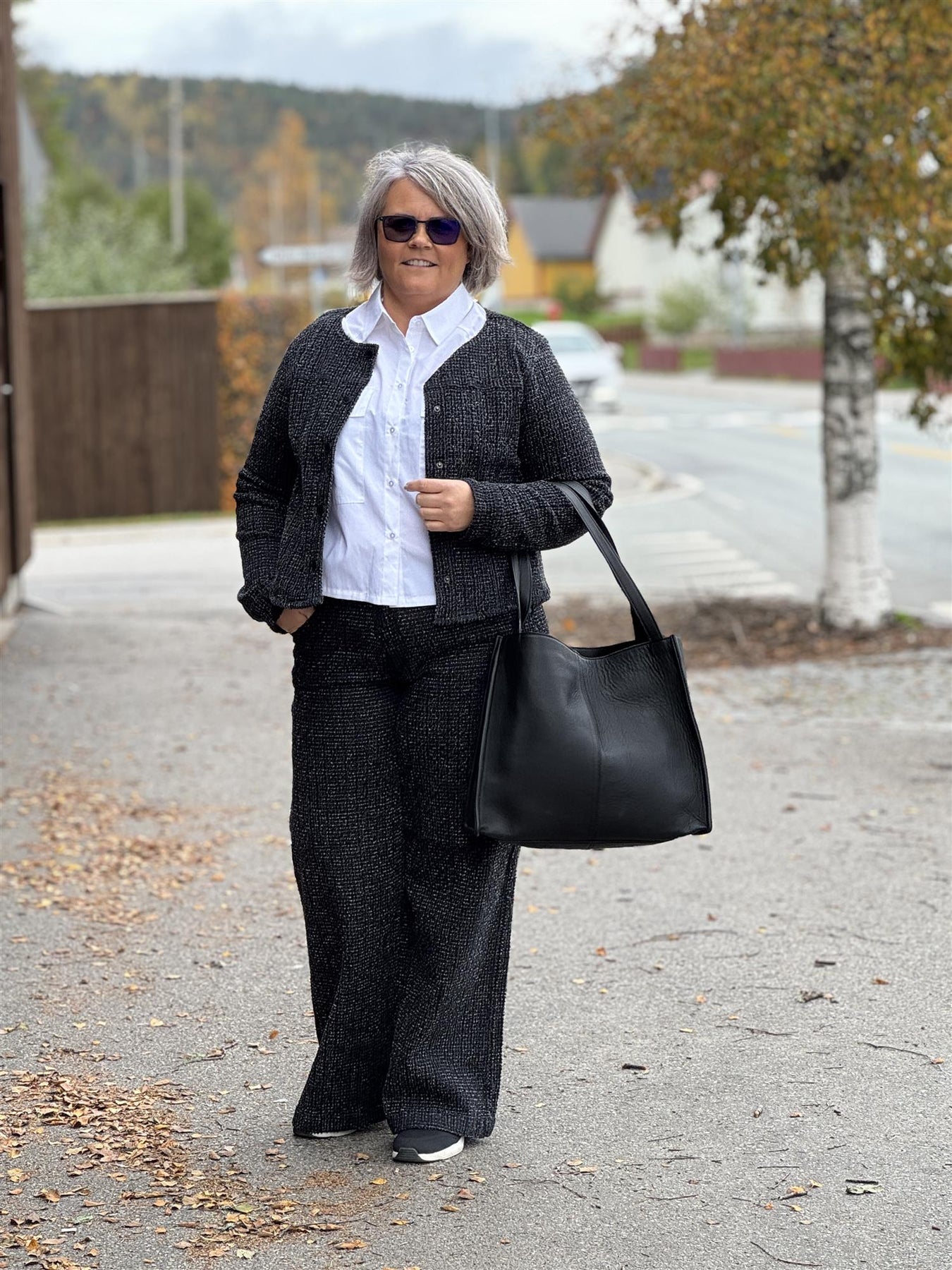 Tweed-inspirert bukse med vid passform – klassisk og kul på samme tid
