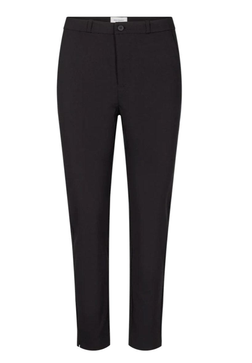 Bukser fra Freequent i en deilig kvalitet. Buksen er enkel i designet med sidelommer, knapp og glidelåslukking foran og en tettsittende passform. Beltestropper og splitt nede i siden ved ankelen