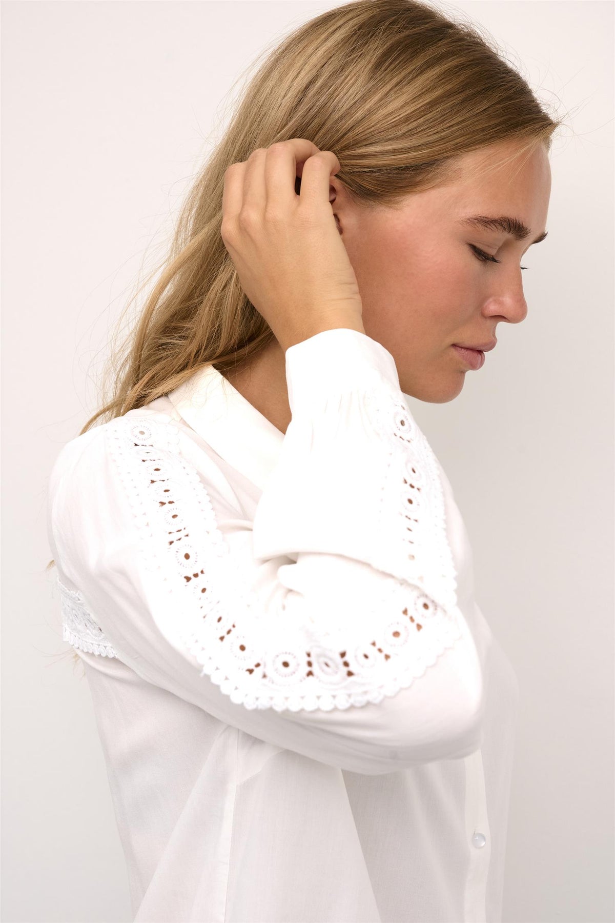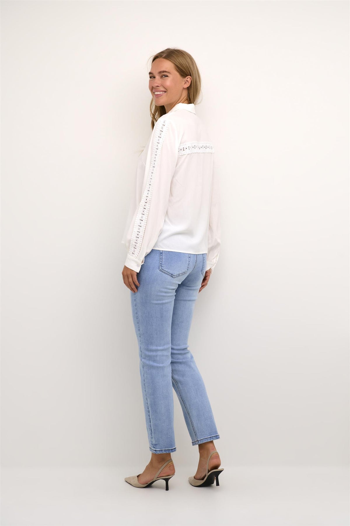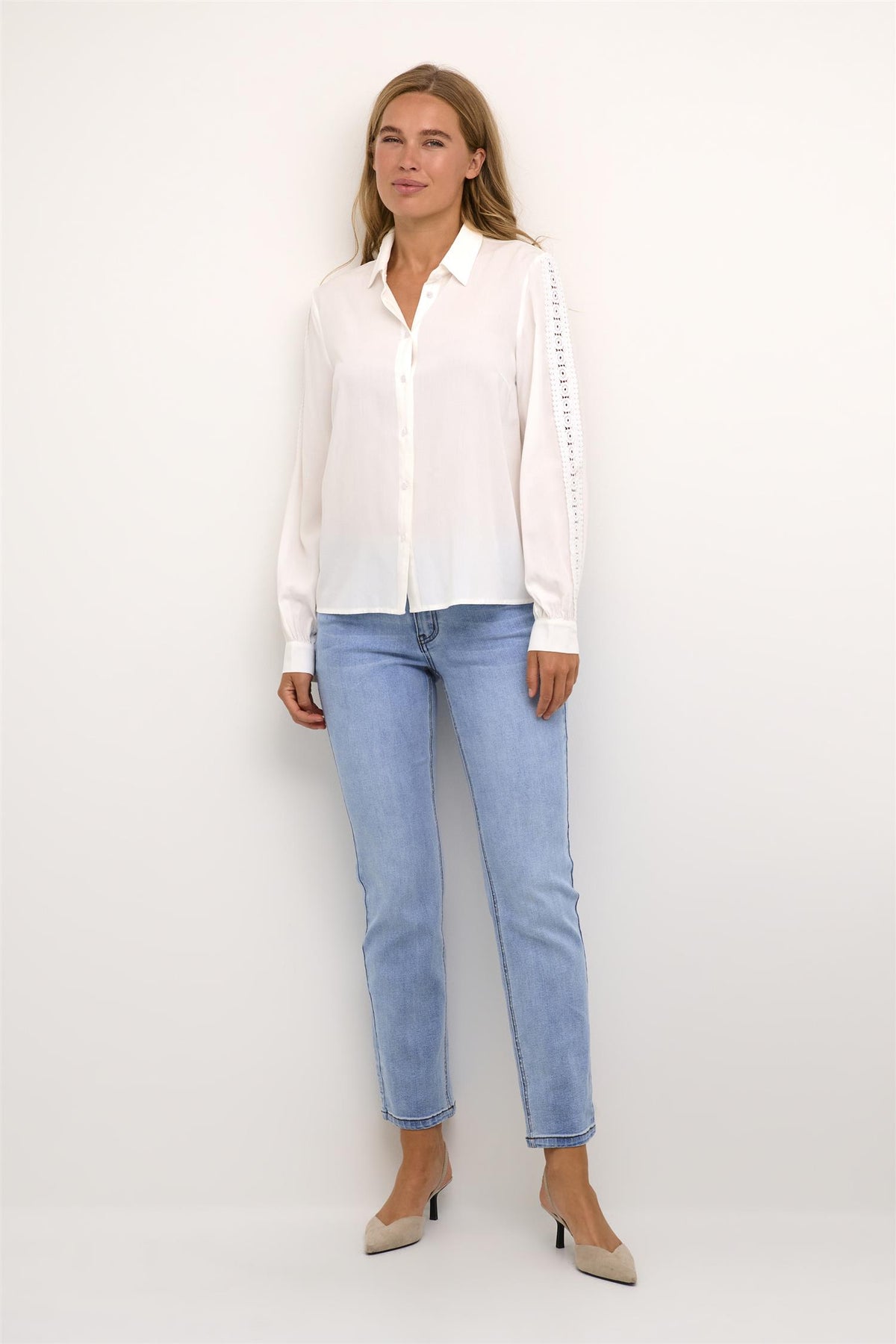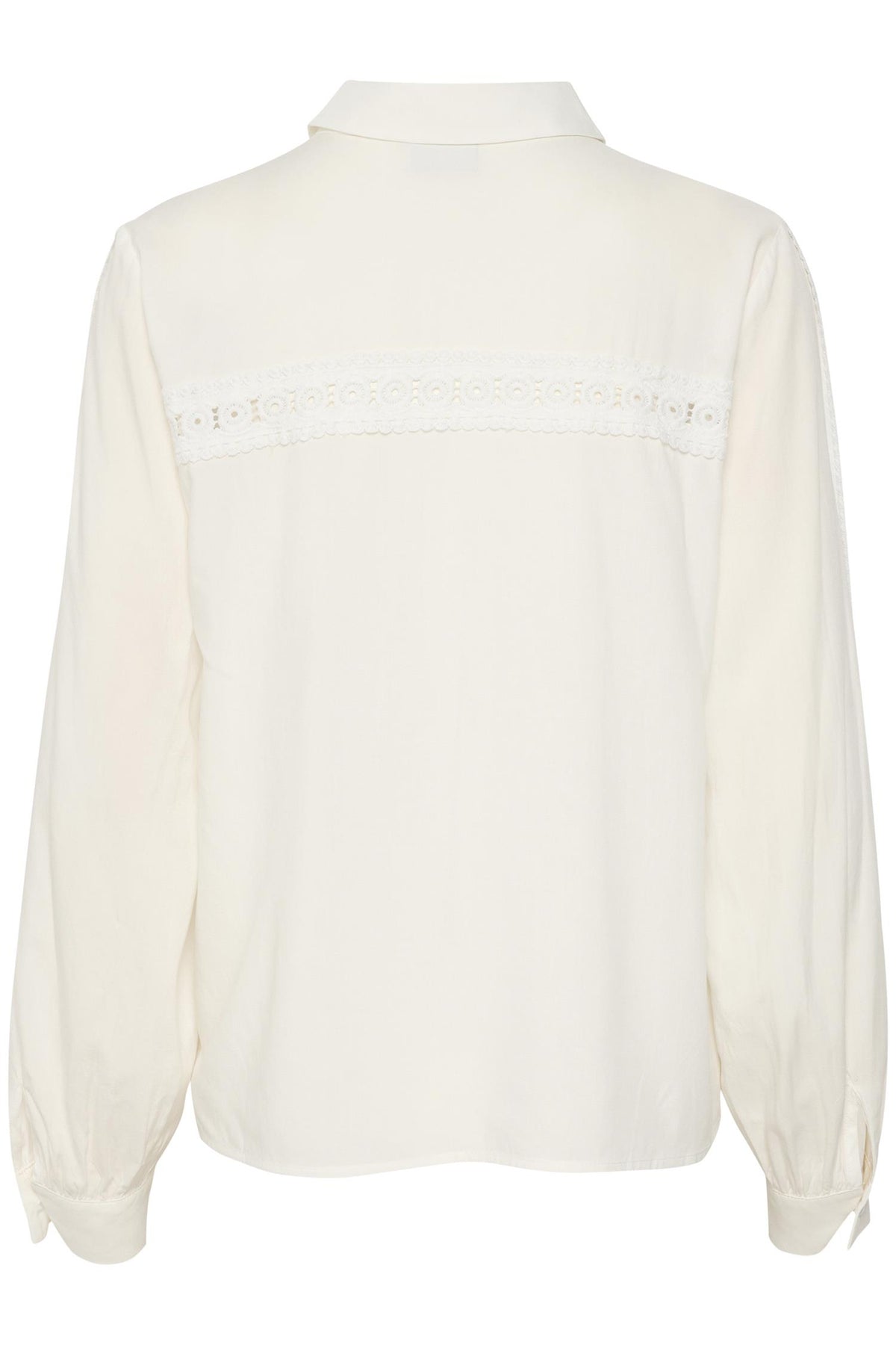 Denne viskose-skjorten er som skapt for de dager når du vil være både comfy og stilig. Lange ermer med søte blondedetaljer gir den det lille ekstra. Med en fin krage blir den som din daglige go-to, uansett om du skal på jobb eller bare ut med venner.